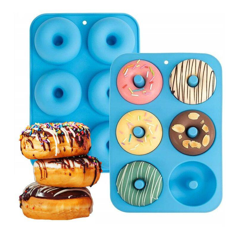 Forma silikonowa zawiera 8 gniazd w kształcie oponki (donaty/ donuts).