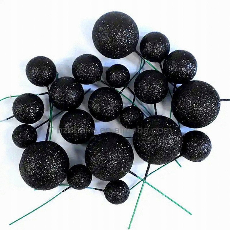 Topper KULE Czarne Brokatowe Ozdoba na tort 20 szt mocno się mienią